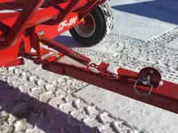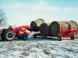The patented two-in-one CF890 has 22 ft. long feeder panels that slide out to 11 ft. wide when loaded. The panels then slide in to 5½ ft. empty width as the cattle press toward the center while feeding. Special hinges allow panels to slide freely, even when one end slides ahead of the other. The bale feeder loads easily without opening the side panels when using a front-end loader and a bale spear. The side panels hinge on one end and swing open with a Dolly wheel for loading with a 3-point rear bale spear. …Or they are easily removed by pulling just one pin when used strictly as a bale carrier. Four bale cradles are provided to feed up to eight 5 ft. or six 6 ft. bales at one time. The self-cleaning cradles eliminate spoilage from mold or mildew. Cattle can clean up any loose hay that may fall through the cradles before it is trampled or wasted. The spring assisted “E-Z Hitch” tongue pins up out of the way to stay clean from manure droppings, or to prevent freeze-down during winter. The feeder has 16,000 lb. capacity, a 90″ wide wheel tread, and comes with low profile 2600 x 12 in.12 PLY flotation tires. It is built for long life outdoor use; vital components of E-Z Trail’s accurate steering are weather.